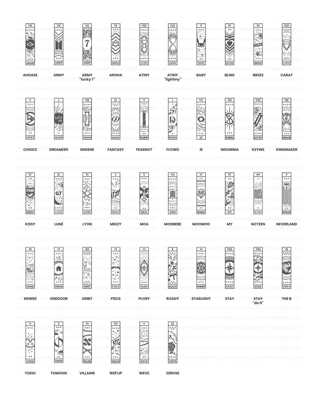 IMPORTANT: In the center of the design, I reference the lightstick of the group. If they don't have a lightstick, I reference their logo. See last picture for examples of various designs (ateez, skz, gidle, bp and more). If the group you want isn't in the examples, I'll make a simple design for you in the same style as the examples.